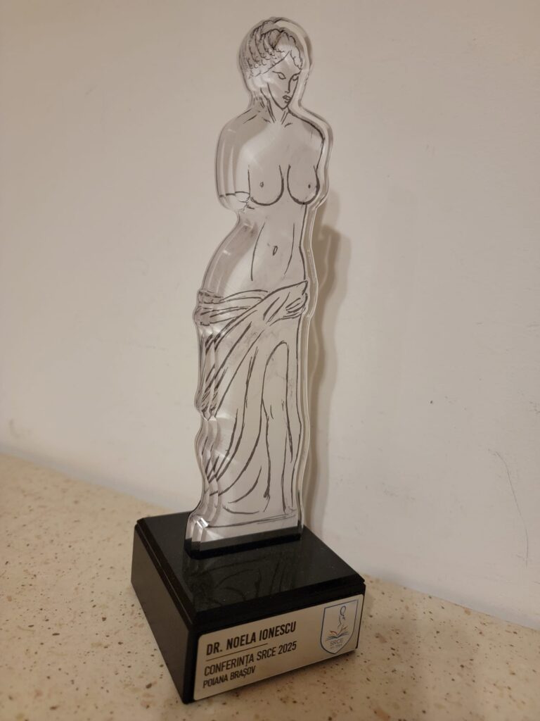 Aș vrea să îmi exprim gratitudinea față de Societatea Română de Chirurgie Estetică! Aceasta mi-a decernat, în anul 2025, statuia inscripționată cu numele meu.